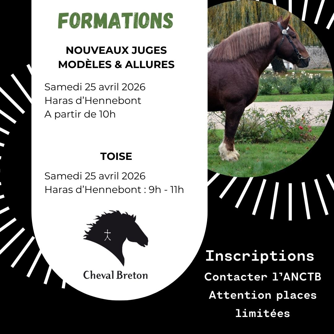 Le Haras d’Hennebont accueille le samedi 25 avril 2026 deux sessions de formation organisées par l'ANCTB à ne pas manquer :