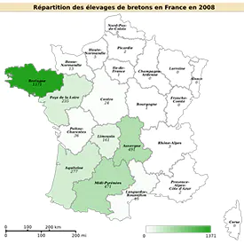 Le berceau de race s'étend traditionnellement sur les 4 départements bretons (Finistère, Côtes d'Armor, Ille-et-Vilaine et Morbihan), mais aussi au nord de la Loire-Atlantique et à l'ouest du Maine-et-Loire. On trouve aujourd'hui le cheval Breton presque partout en France et principalement dans les zones de moyenne montagne du Massif Central et dans les Pyrénées.