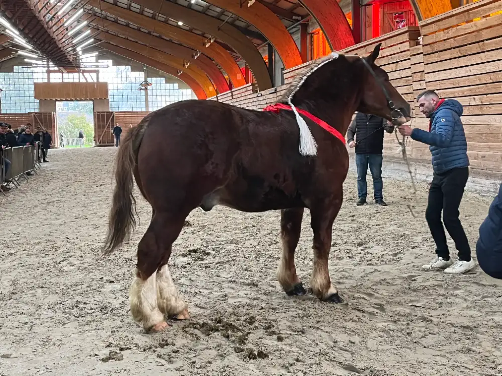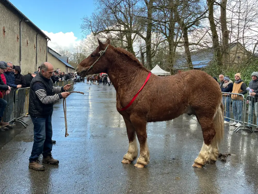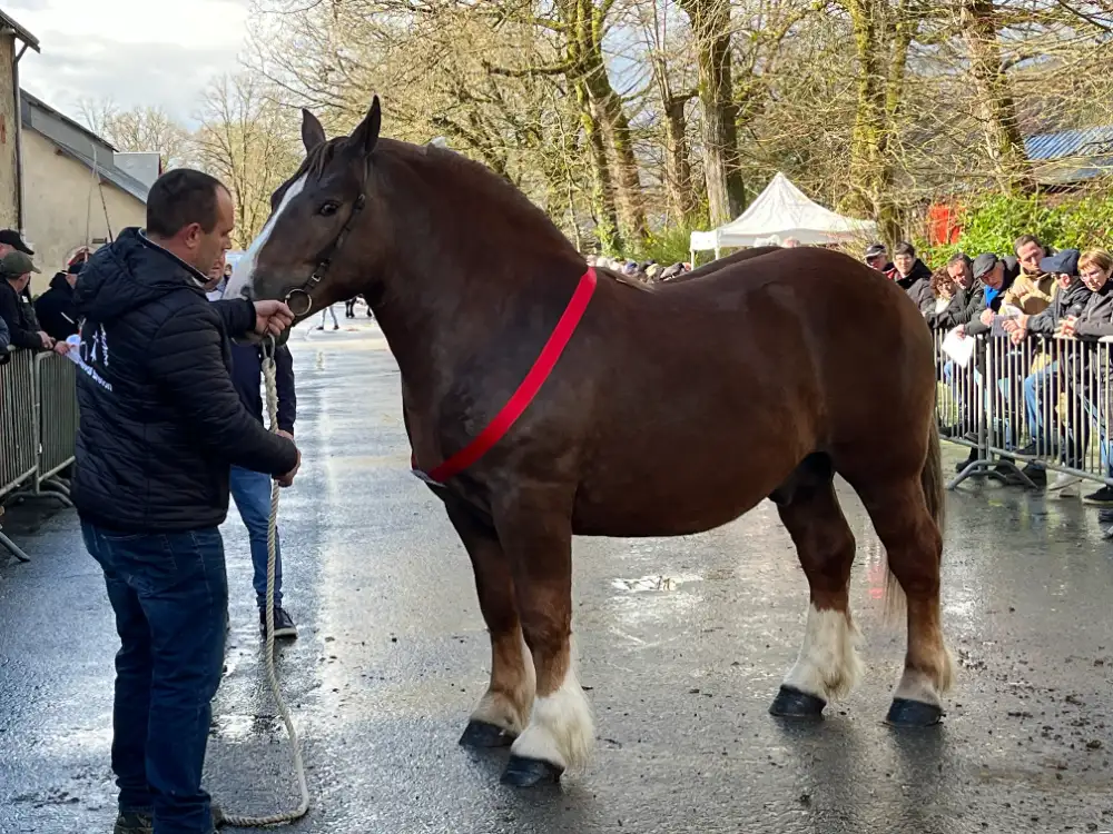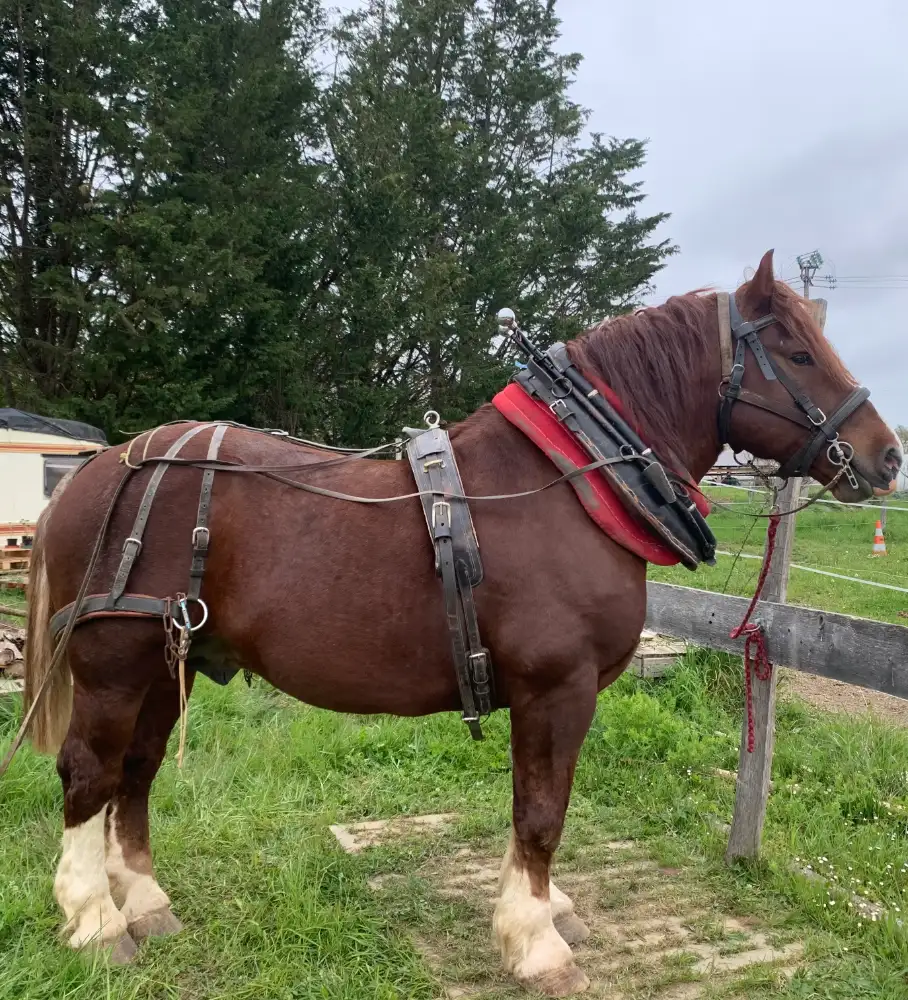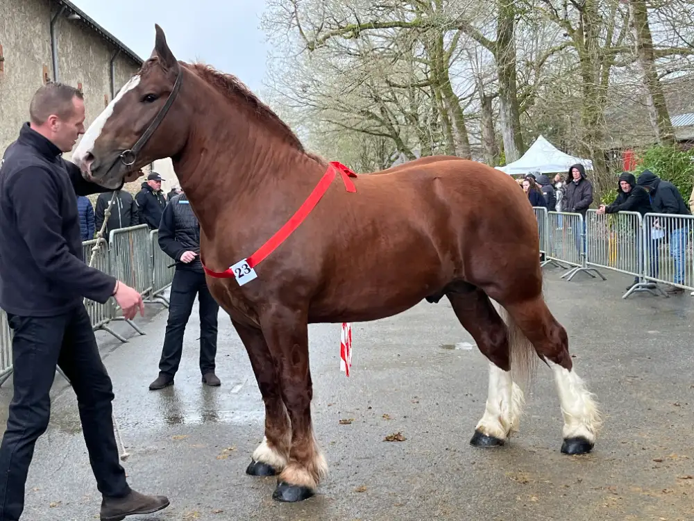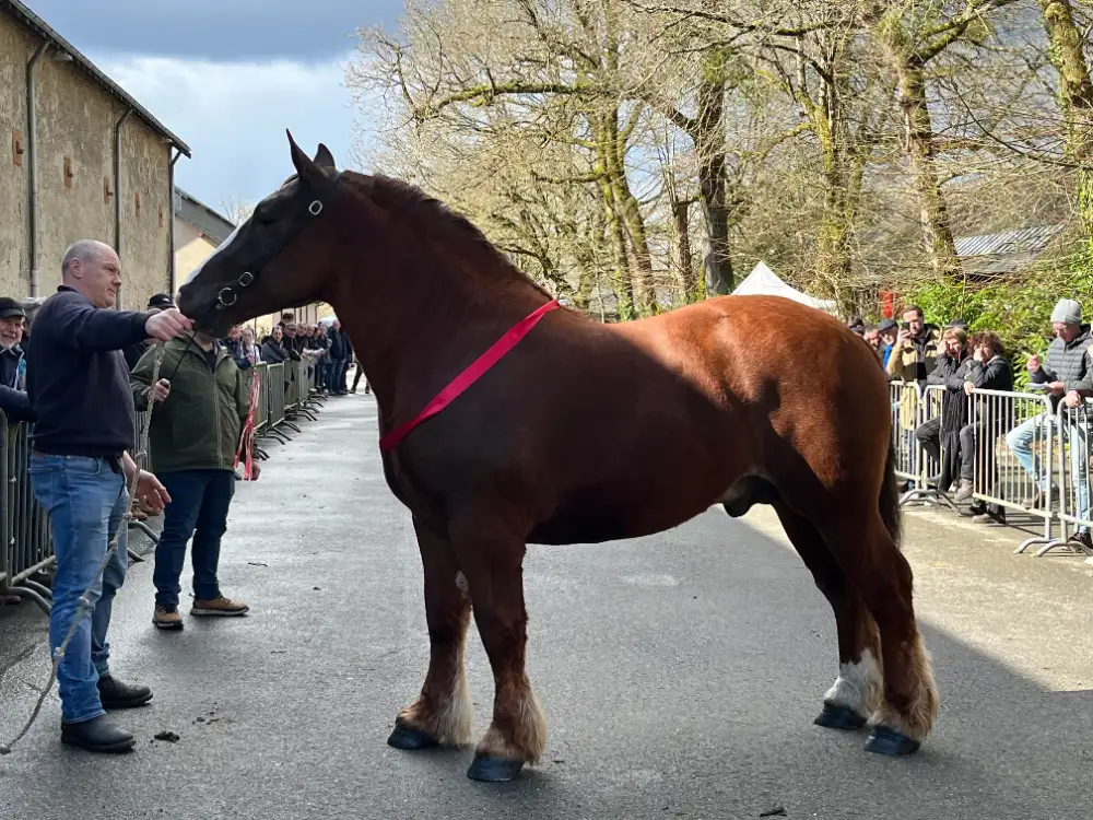 Mâle né il y a 9 ans, Alezan brûlé, Trait Breton.
