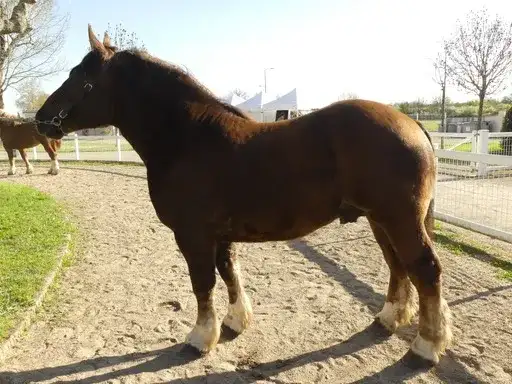 Mâle né il y a 8 ans, Alezan foncé, Trait Breton.