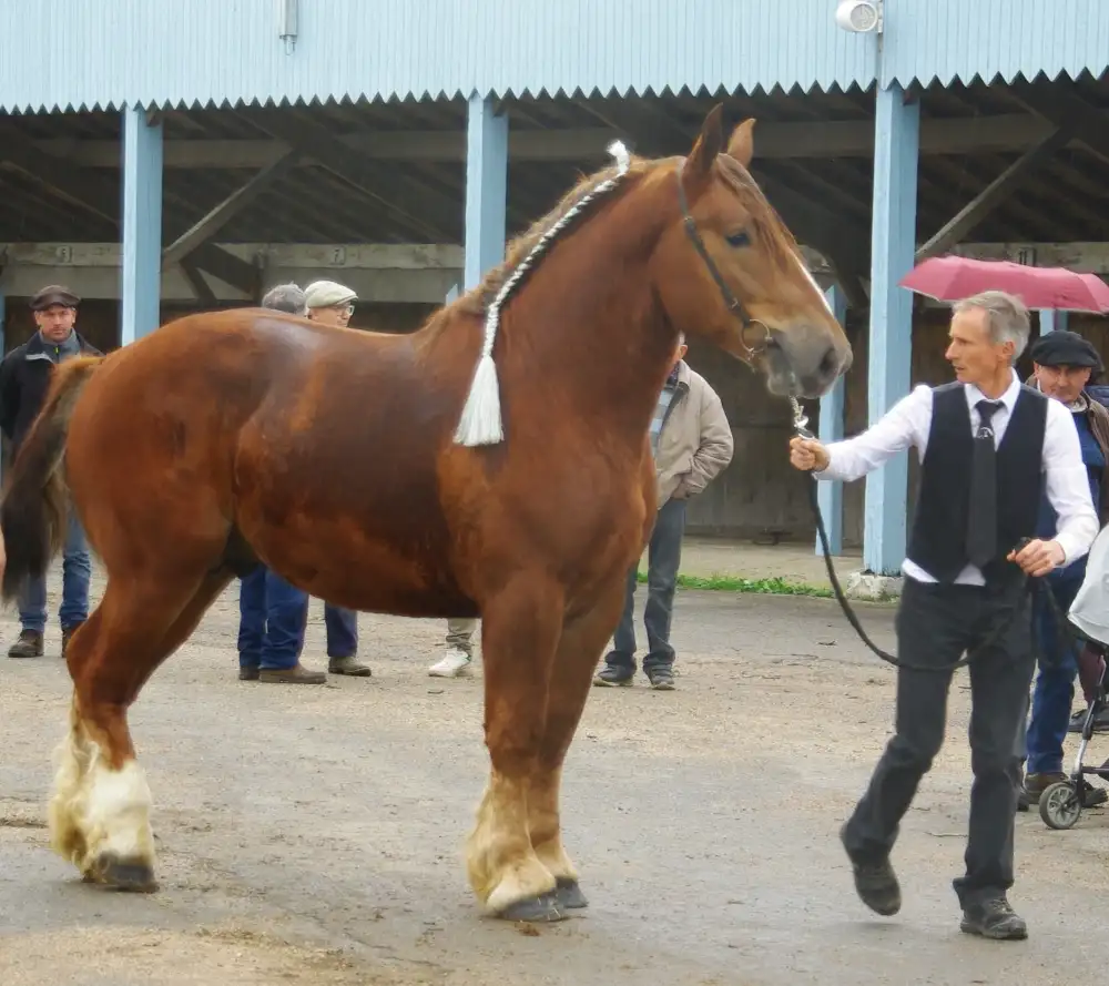 Mâle né il y a 14 ans, Alezan brûlé, Trait Breton.