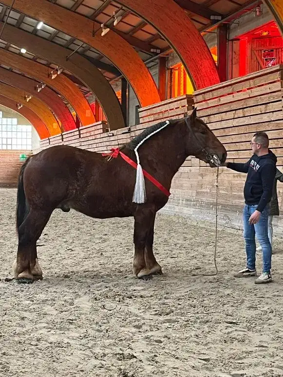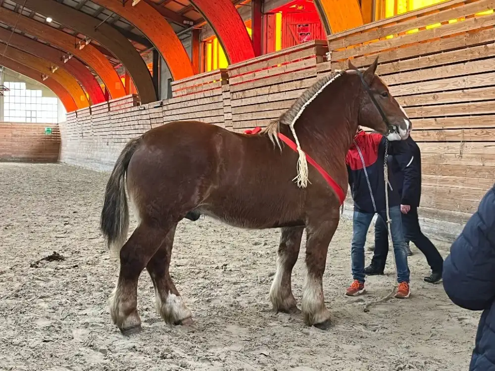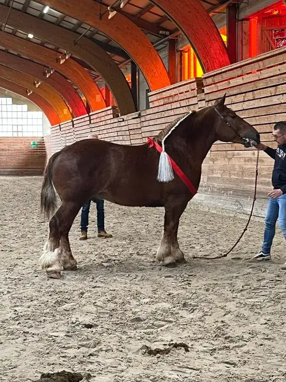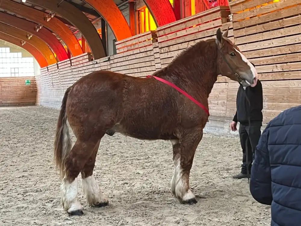 Mâle né il y a 8 ans, Alezan brûlé, Trait Breton.
